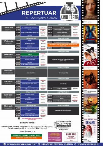 Bilety dostępne w kasie SCK oraz na www.scksieradz.pl, a także w BILETOMACIE (przy SALI KINOWEJ).