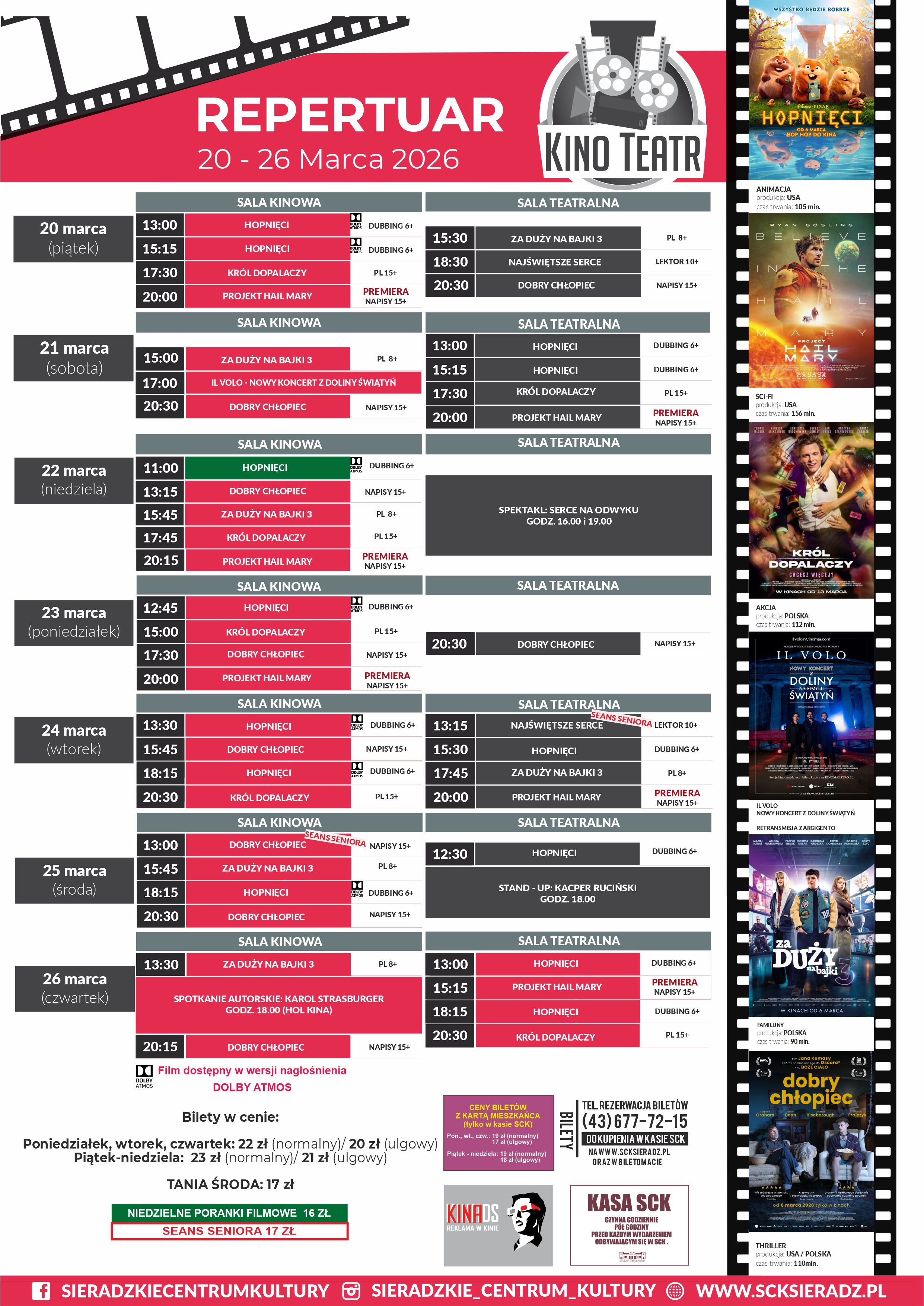 Bilety dostępne w kasie SCK oraz na www.scksieradz.pl, a także w BILETOMACIE (przy SALI KINOWEJ).