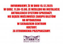 Bilety dostępne w kasie SCK oraz na www.scksieradz.pl, a także w BILETOMACIE (przy SALI KINOWEJ).