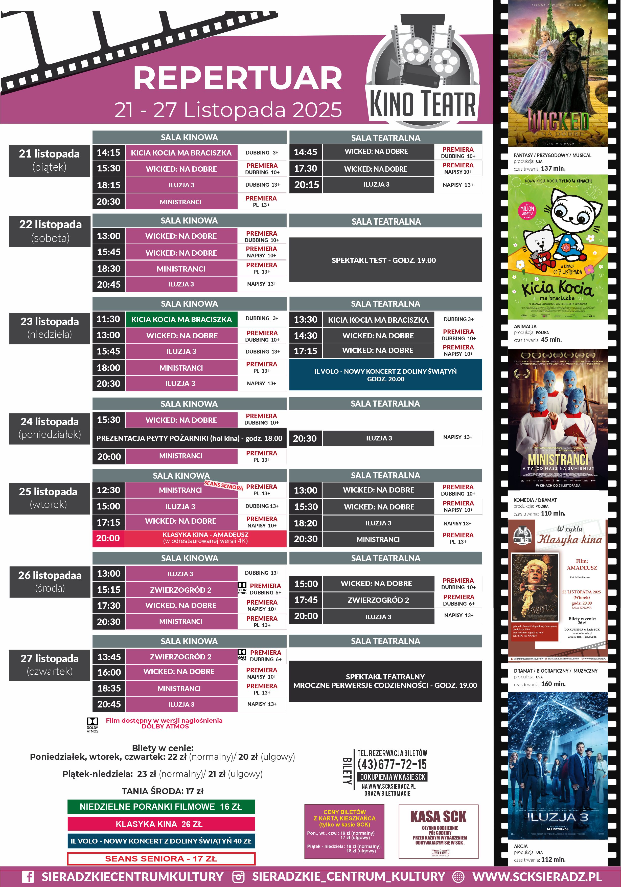 Bilety dostępne w kasie SCK oraz na www.scksieradz.pl, a także w BILETOMACIE (przy SALI KINOWEJ).