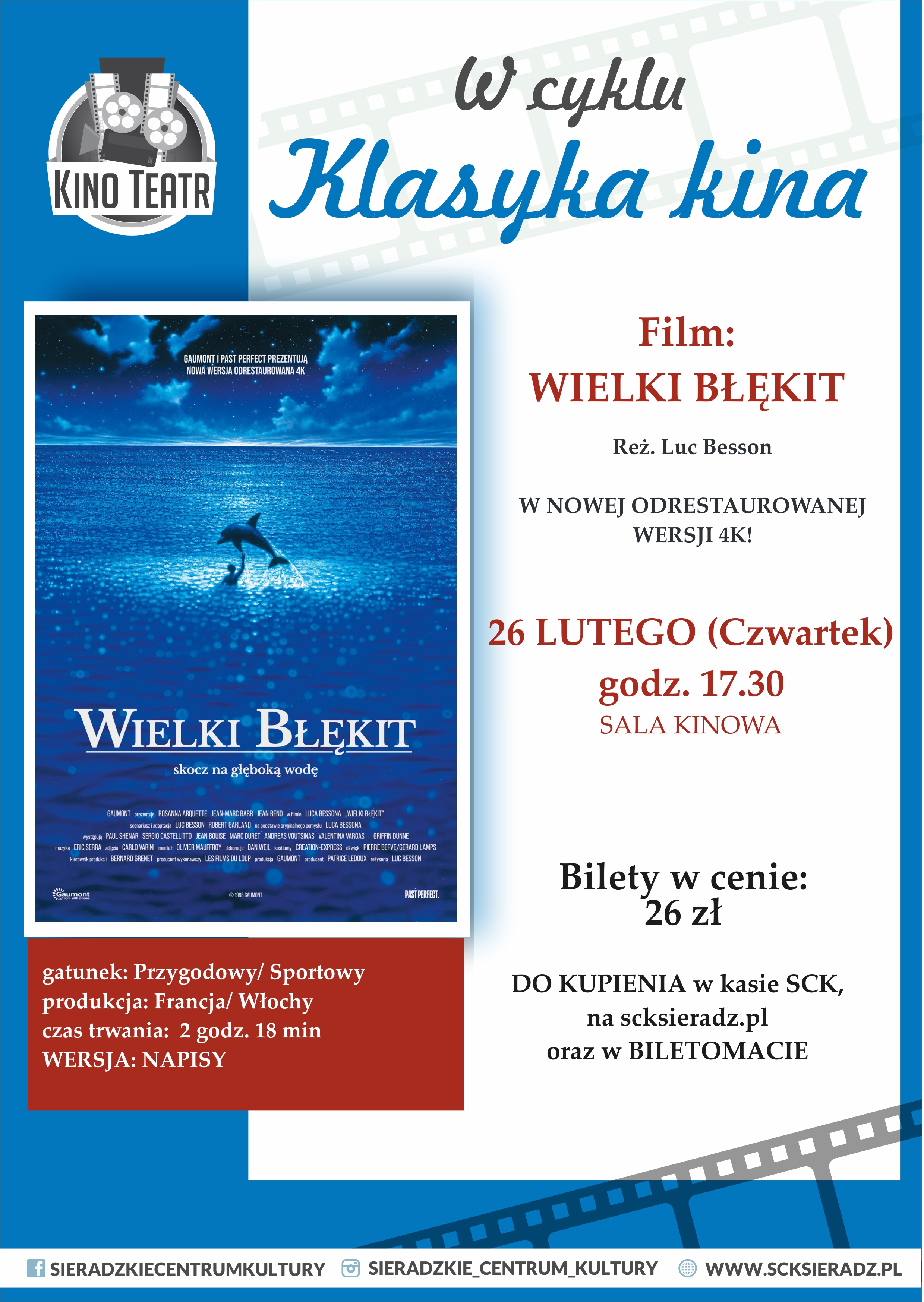 17.30 - KLASYKA KINA: WIELKI BŁĘKIT / NAPISY  15+/ SALA KINOWA