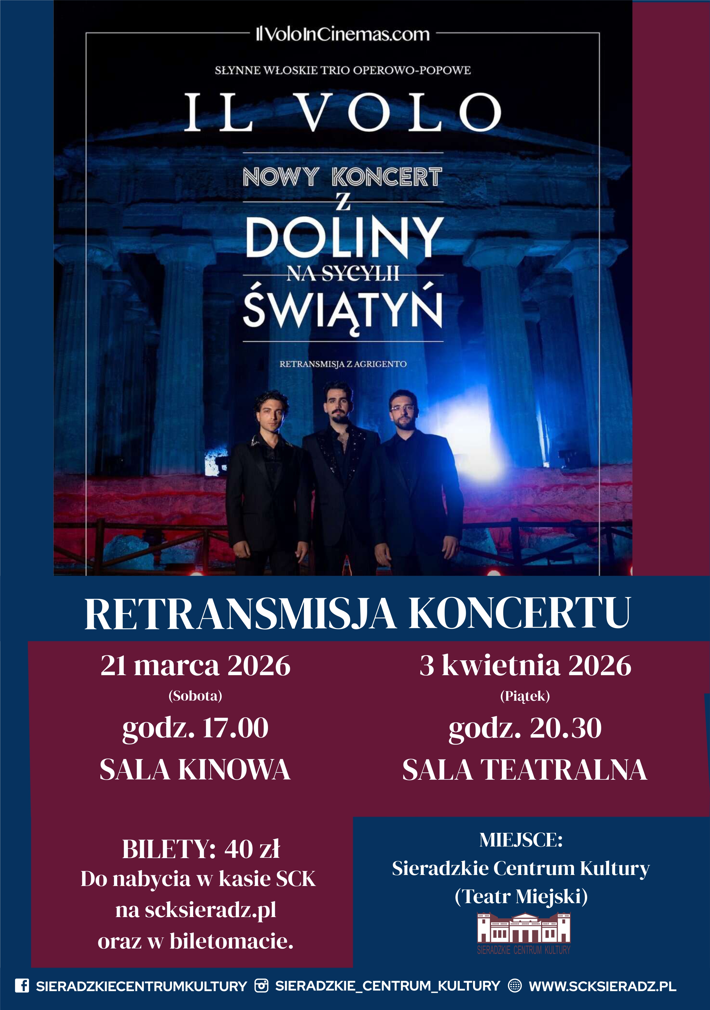Cena biletu: 40 zł (do nabycia w kasie SCK, na scksieradz.pl lub w BILETOMACIE).