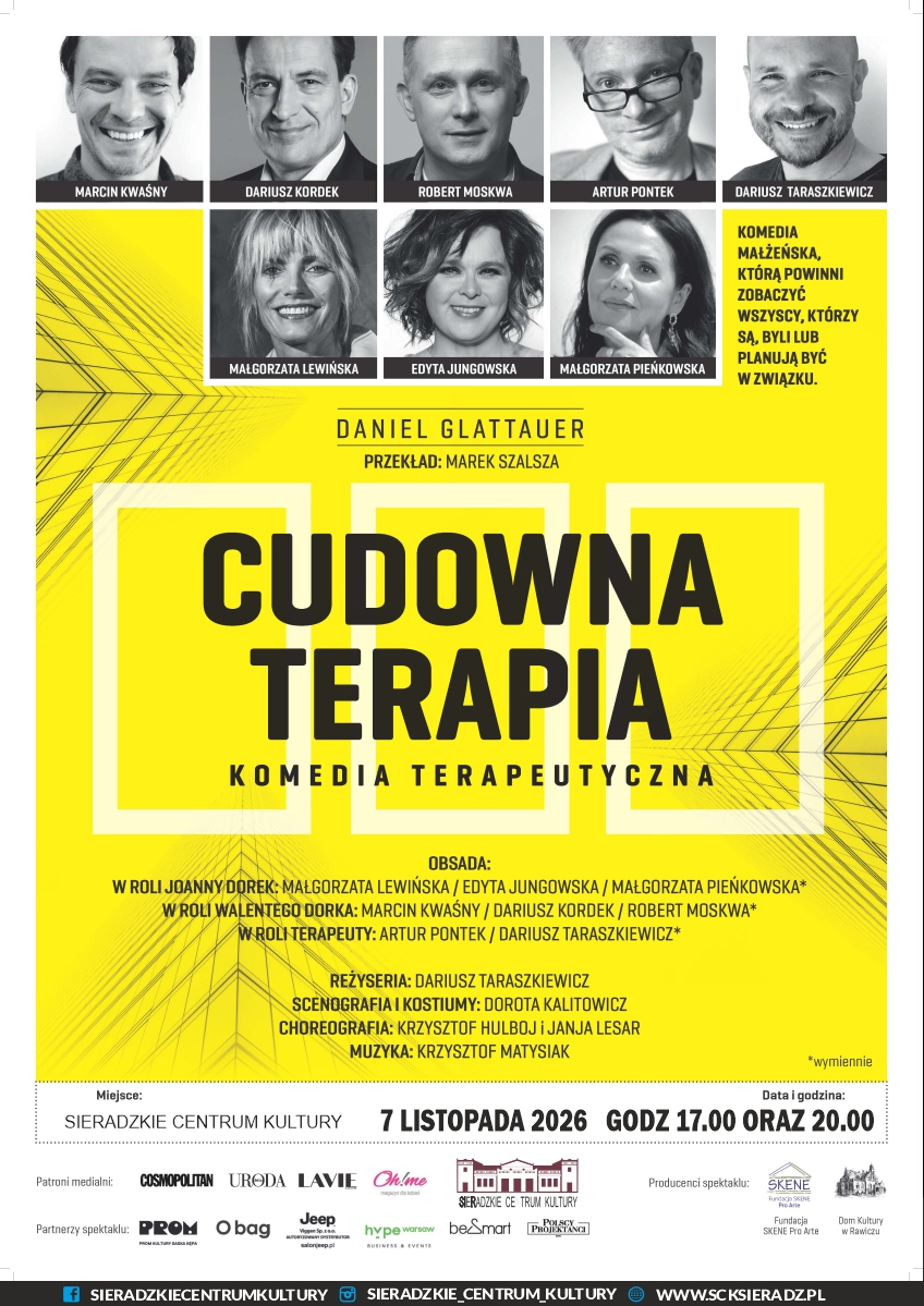 Małżeński kryzys? Mamy na to Cudowną terapię! Leczą śmiechem, analizują kryzysy małżeńskie i mają najlepszego terapeutę na świecie. Zapraszamy na przewrotną komedię terapeutyczną w gwiazdorskiej obsadzie. Czekają Was błyskotliwe dialogi, zabawne życiowe sytuacje, a może i happy end?