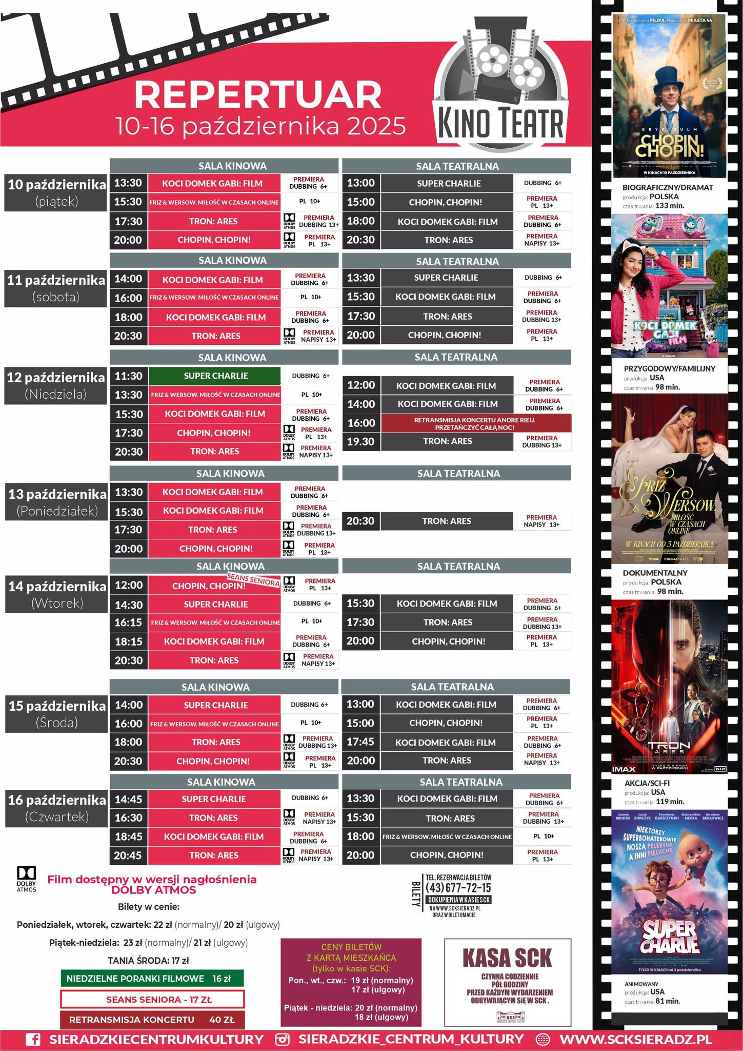 Bilety dostępne w kasie SCK oraz na www.scksieradz.pl, a także w BILETOMACIE (przy SALI KINOWEJ).
