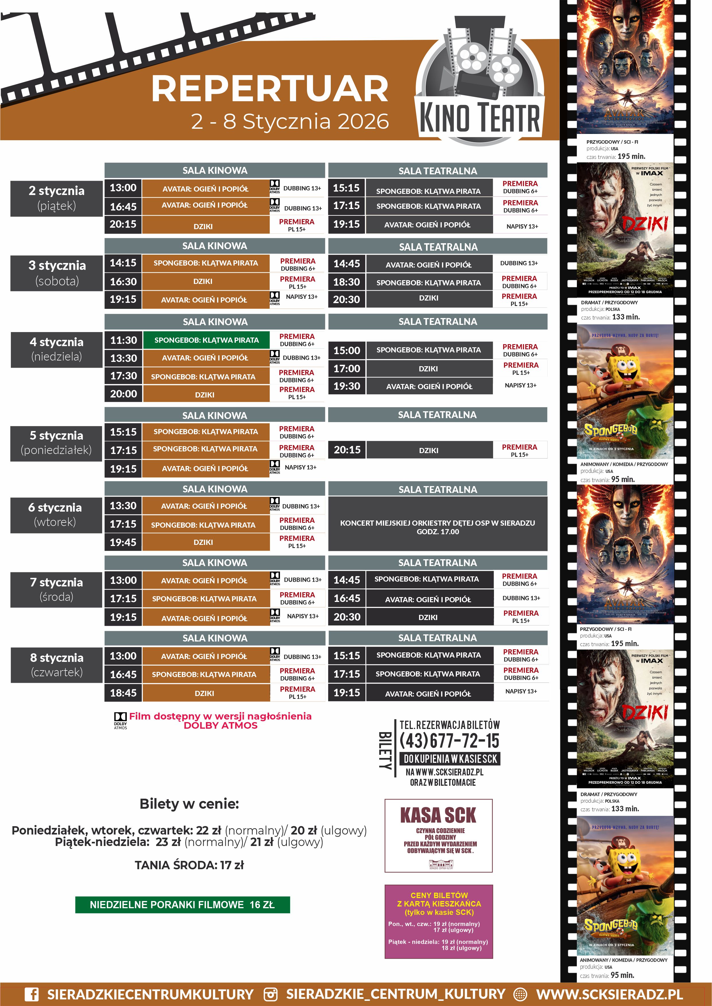 Bilety dostępne w kasie SCK oraz na www.scksieradz.pl, a także w BILETOMACIE (przy SALI KINOWEJ).
