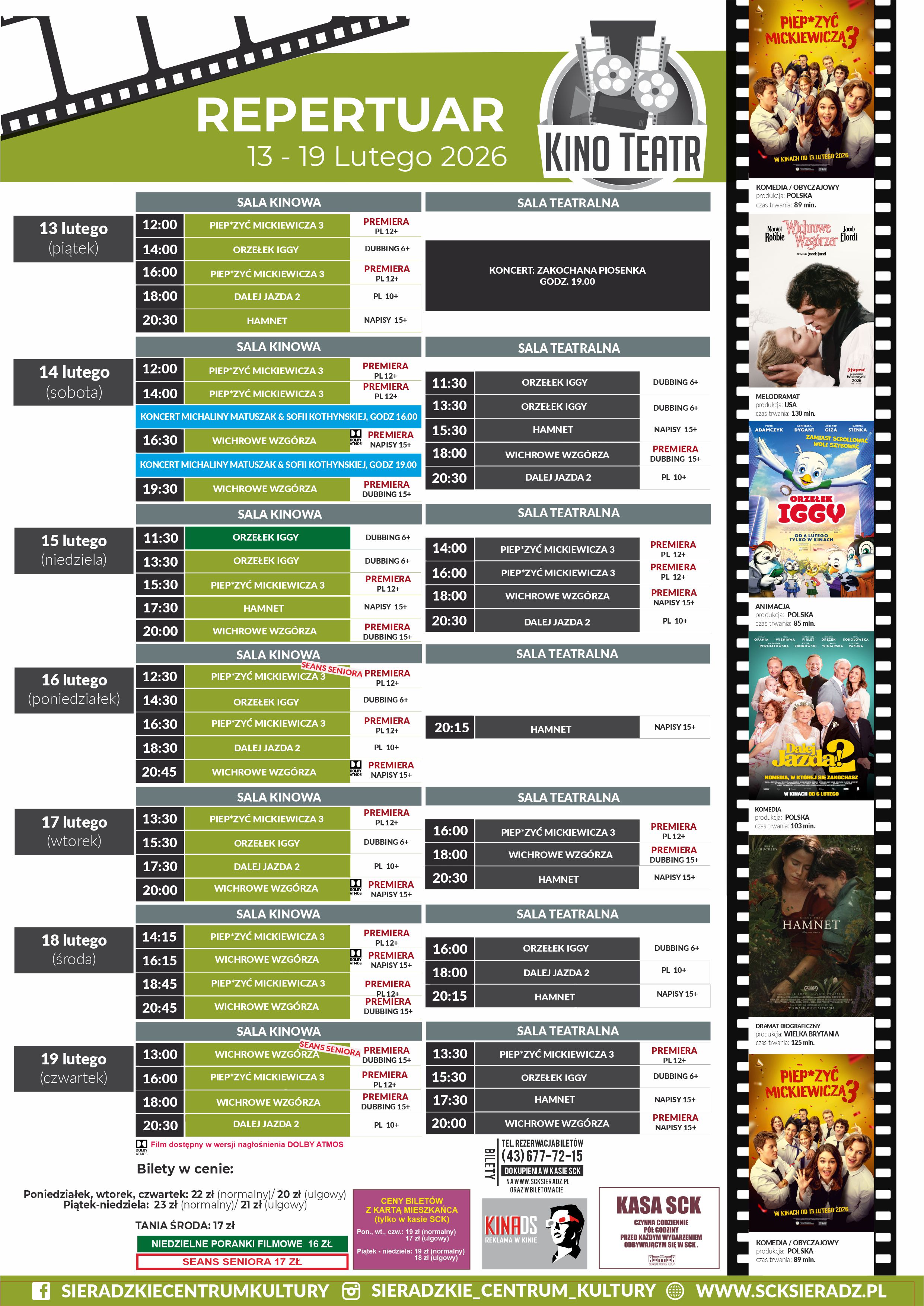 Bilety dostępne w kasie SCK oraz na www.scksieradz.pl, a także w BILETOMACIE (przy SALI KINOWEJ)