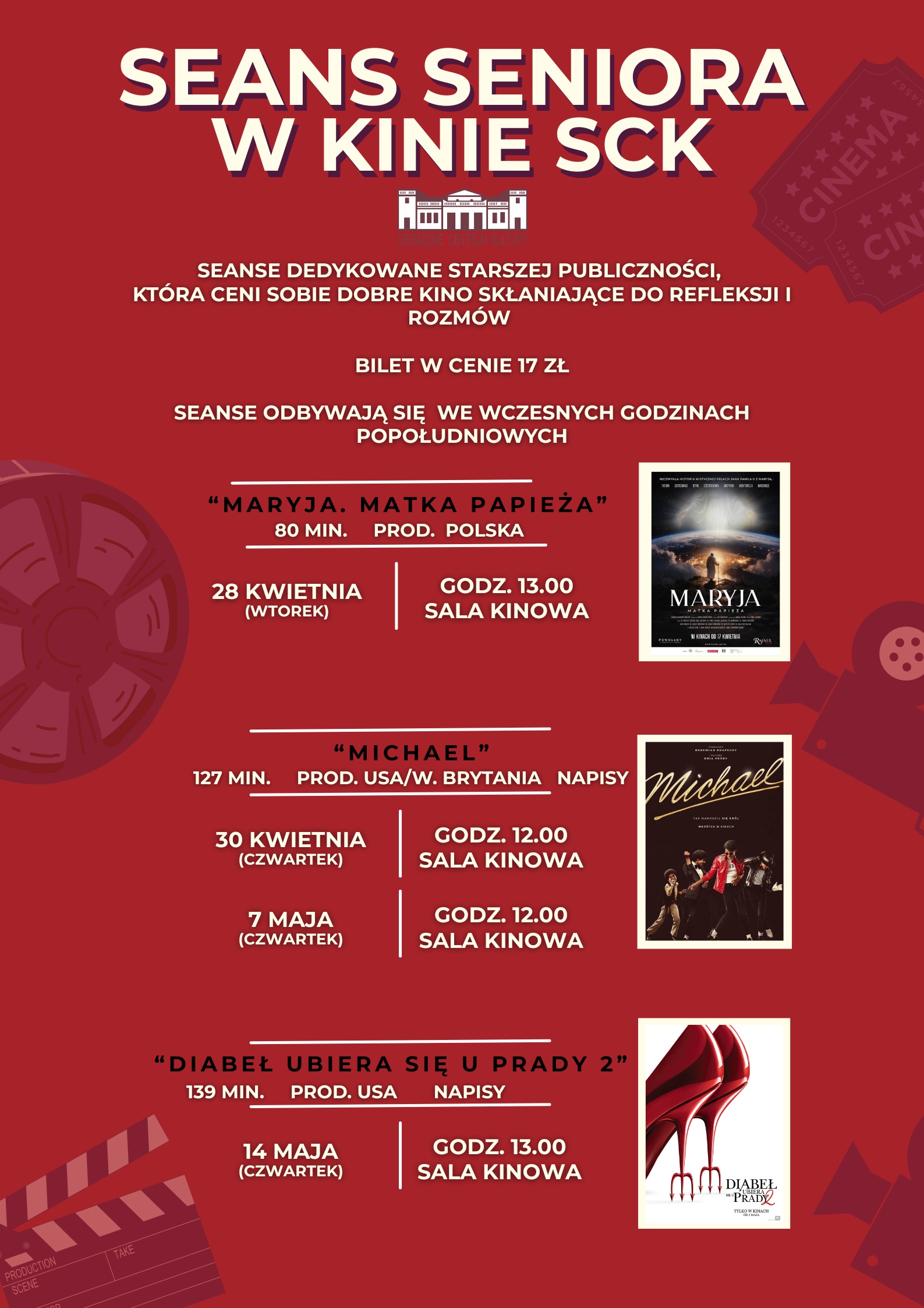 Zapraszamy szczególnie Seniorki i Seniorów, natomiast możliwość wstępu na taki seans ma oczywiście każdy :)